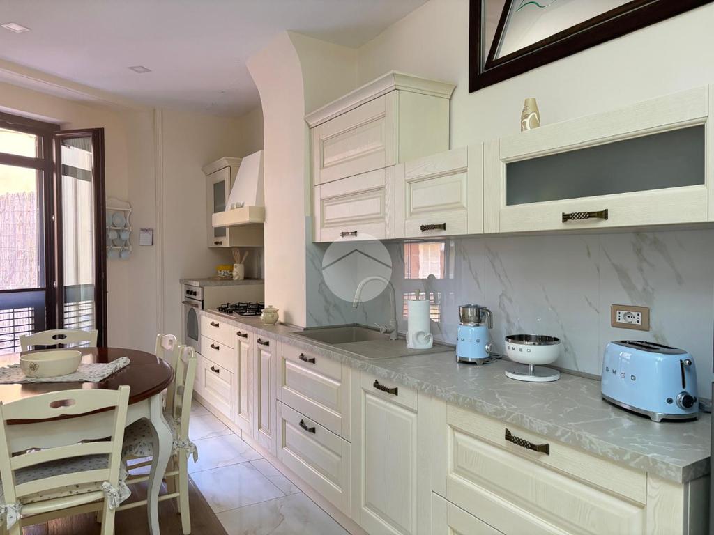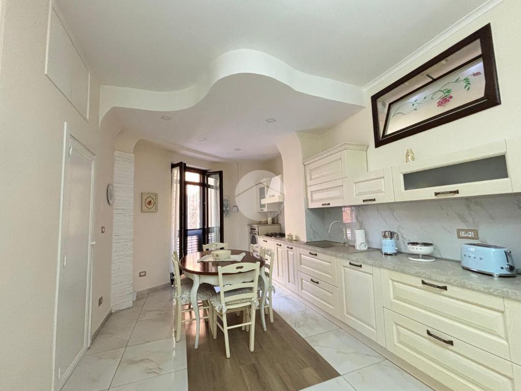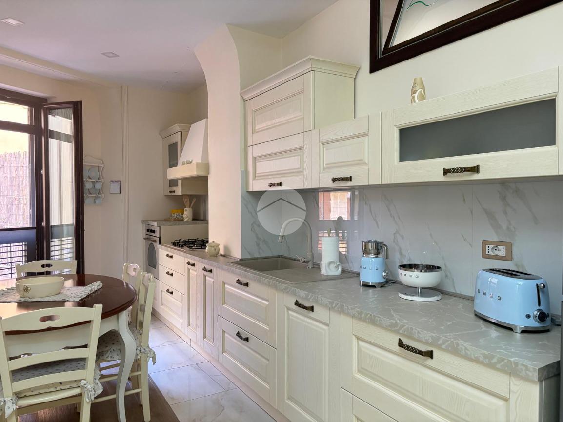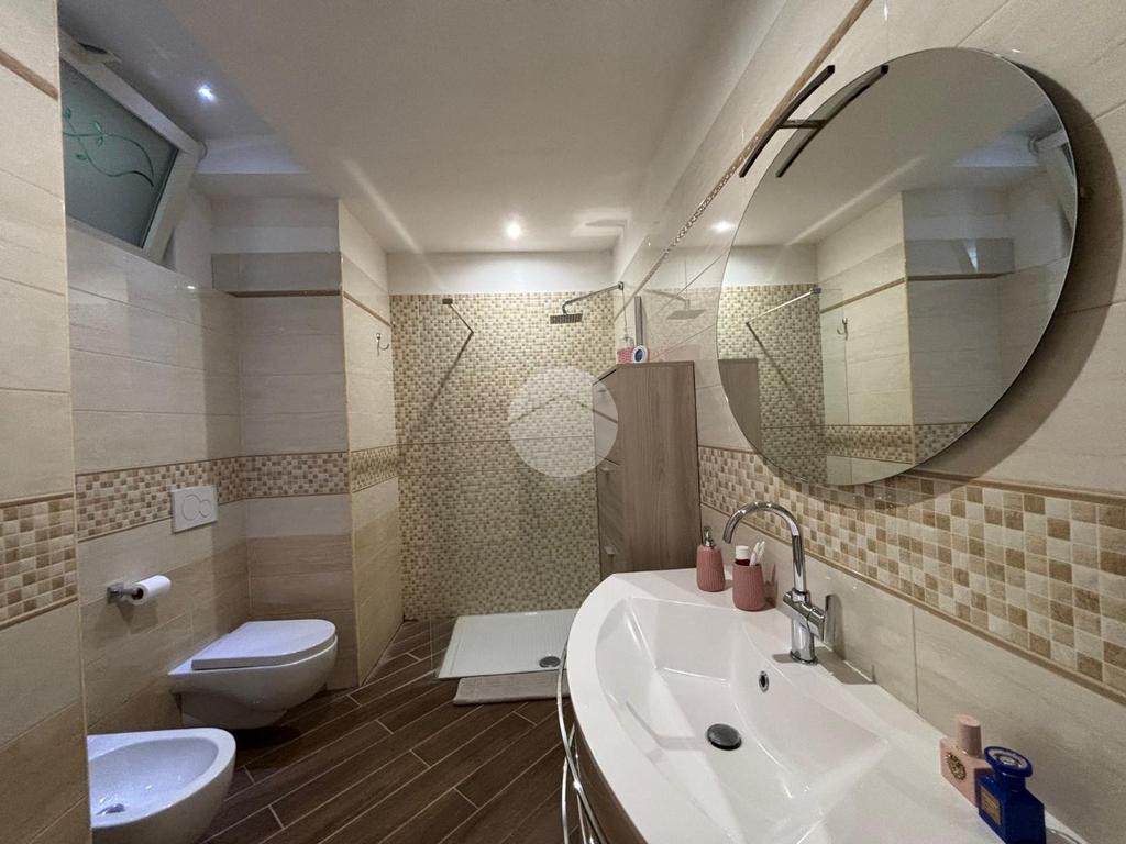 L'immobile, recentemente ristrutturato, offre un ambiente moderno e accogliente. La cucina, progettata con attenzione ai dettagli, si apre su un soggiorno luminoso grazie alla doppia esposizione, creando uno spazio ideale per momenti di relax e convivialità e a completare una lavaderia.